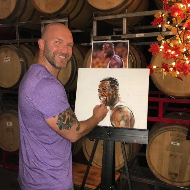 Joel is a full-time artist whose vibrant work has captivated collectors across the US, UK, and Asia. A native of Raleigh, NC, Joel’s journey has taken him from Atlanta to San Francisco, London, and back to the Raleigh in 2021, where he now lives with his wife and three daughters. A proud graduate of UNC-Chapel Hill, he has made his mark in the local art scene through gallery exhibits, markets, and festivals. Joel’s artistic practice revolves around three core themes: pop art figures and portraits, abstract works, and evocative landscapes. While his subject matter varies, his signature style remains constant, defined by bold colors, striking contrasts, and a sense of fluid movement. These elements come together to create art that invites viewers into a world of both familiarity and mystery.